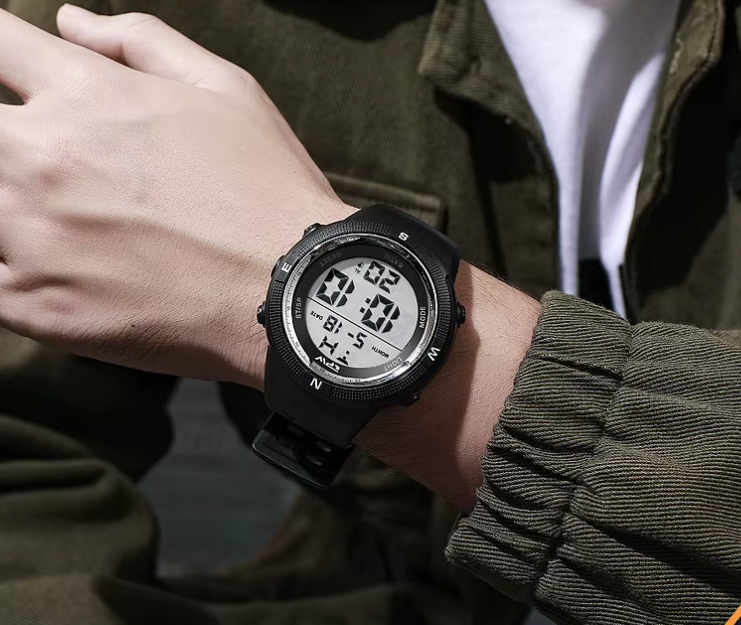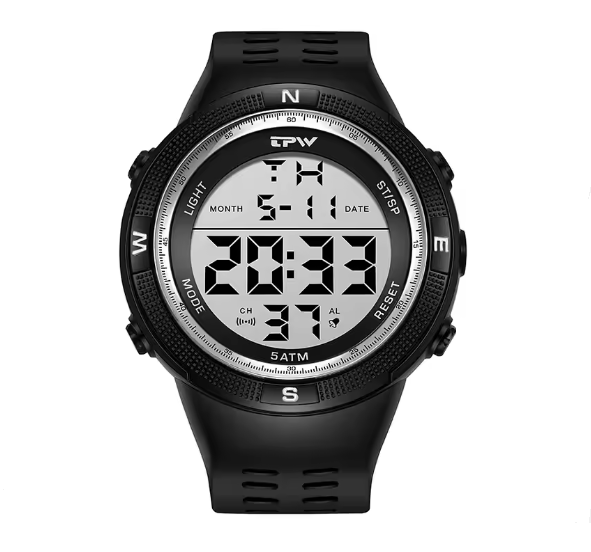 Ceas electronic barbatesc,  cifre negre pe ecran alb usor de citit, cadran mare.
